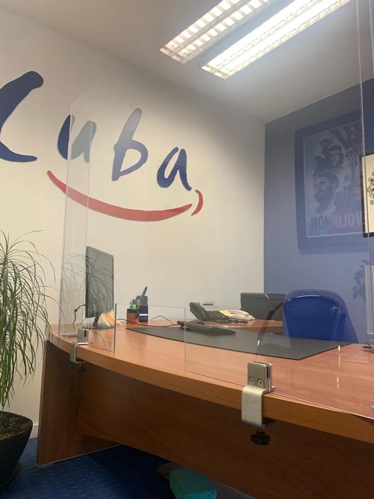 We were happy to supply the Cuban Embassy with a custom protection screen to their specifications. The client requested a screen which would clamp to the desk to ensure the screen did not slide around. We offer this clamp and many others to suit whatever the situation. This custom order went from phone call enquiry to supplied and fitted in under 48 hours.
